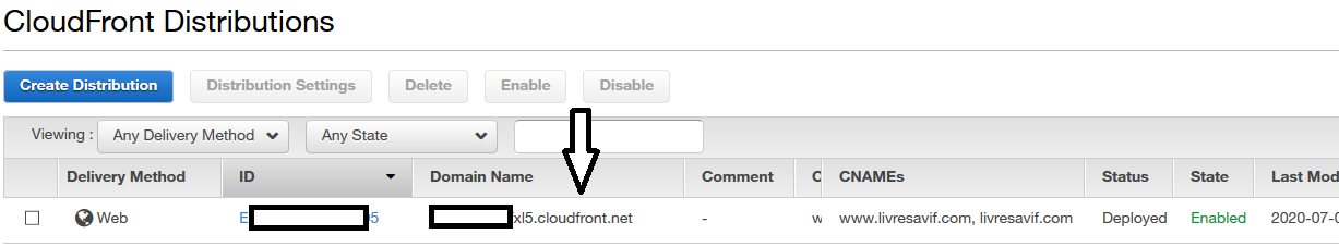 Création d'une distribution cloudfront