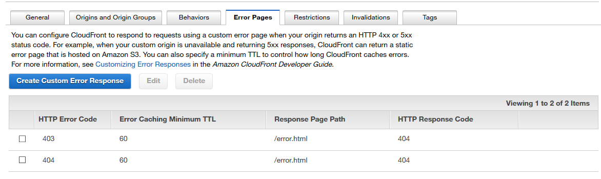 - Origin domain name : Ne pas sélectionner le bucket ! Il faut le modifier pour récupérer la valeur indiquée dans s3, bucket properties> static website hosting> endpoint : du style mybucket.s3-website.eu-west-3.amazonaws.com.